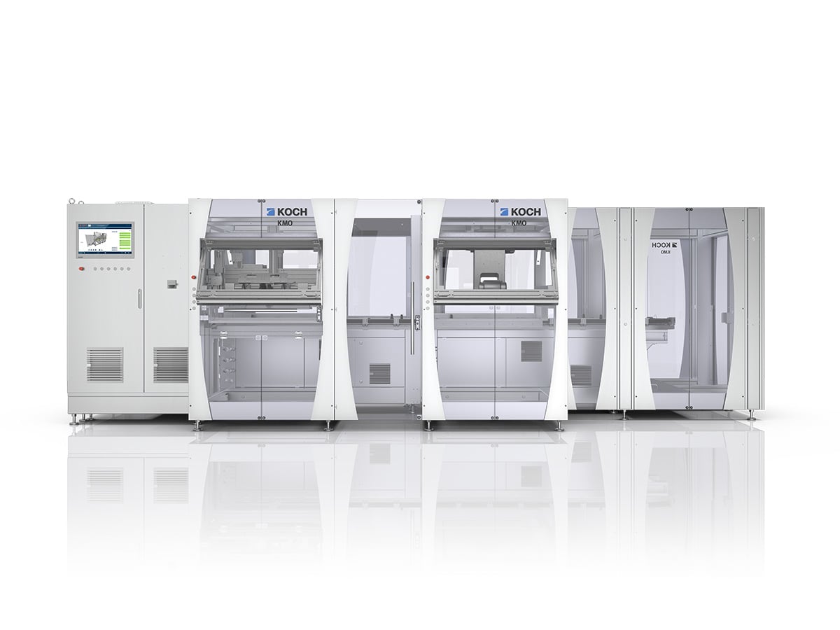 Diese Prozesse sind bei KOCH als modulare Funktionsmodule verfügbar und können unabhängig voneinander automatisiert werden. Durch den modularen Maschinenbau lassen sich bereits mit wenigen Modulen hohe Automatisierungsgrade realisieren.